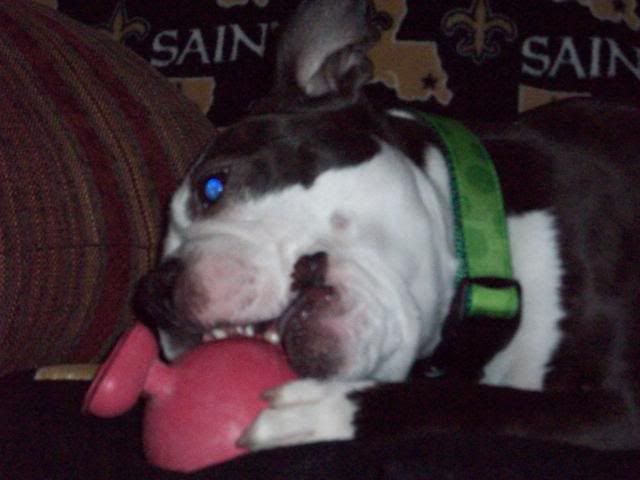Ellie loves her tennis balls and to pull the squeakers out of Cuz toys (which I don't mind, they are annoying anyway). She is so in tune to what's going on that when I talk for her, she often looks the correct direction and acts as if I am talking for her. It is very cute.